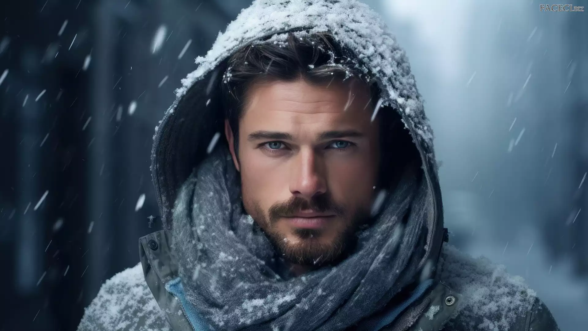 Mężczyzna, Kaptur, Śnieg, Szal - faceci.biz